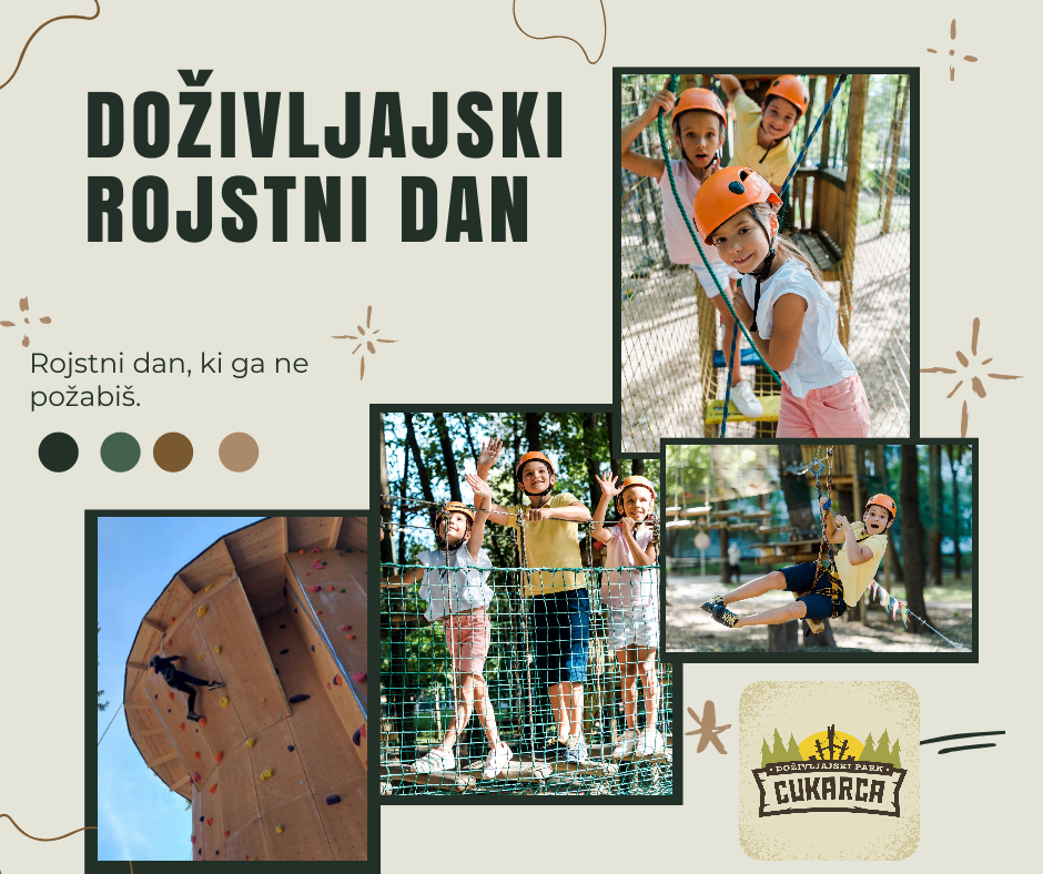 V Parku Cukarca rojstni dnevi niso le zabava – so avantura med krošnjami, izziv za plezalno steno in nora dogodivščina v naravi, ki jo boš še dolgo pripovedoval(a)!