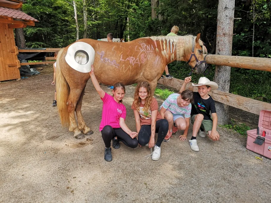 Mentorji ustvarimo okolje, kjer otroci naravo doživljajo skozi igro, skupinsko sodelovanje in domišljijske naloge. Prisotnost konjev ter drugih živali, taborni ogenj in tematski programi pa praznovanje dvignejo na povsem novo raven to je prostor, kjer se ustvarjajo najlepši spomini.